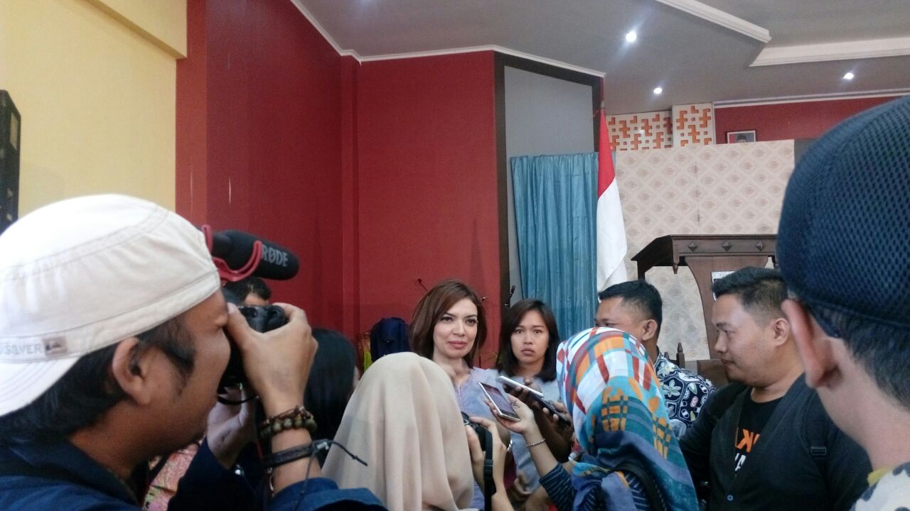| Keterangan Foto: Najwa Shihab ketika dimintai keterangan oleh awak media. (foto: Makhruf) |